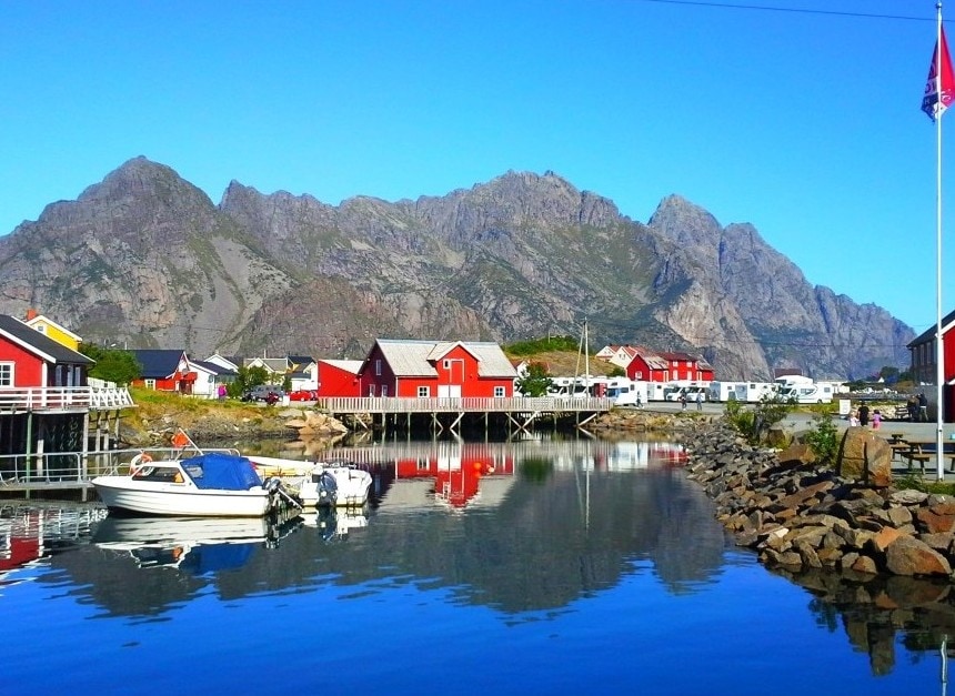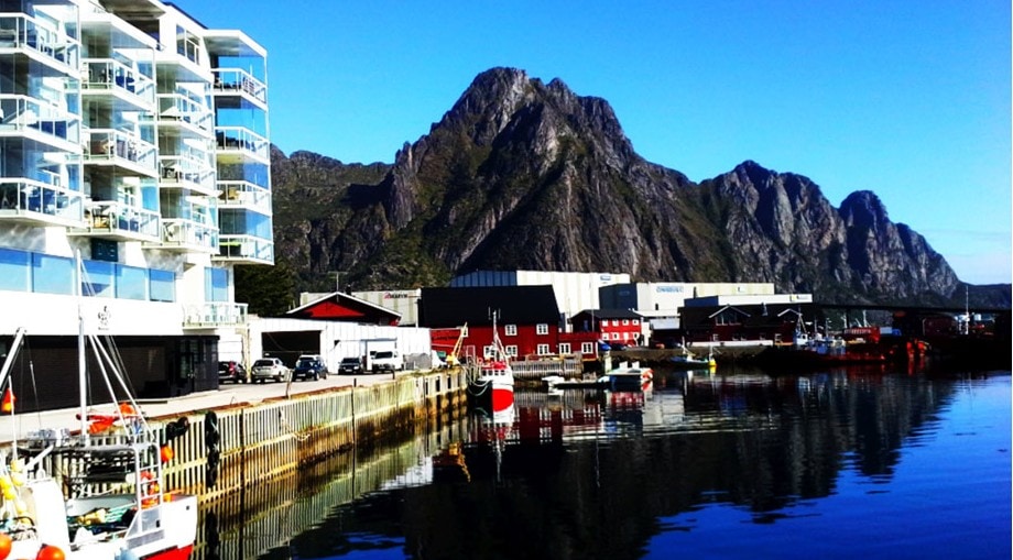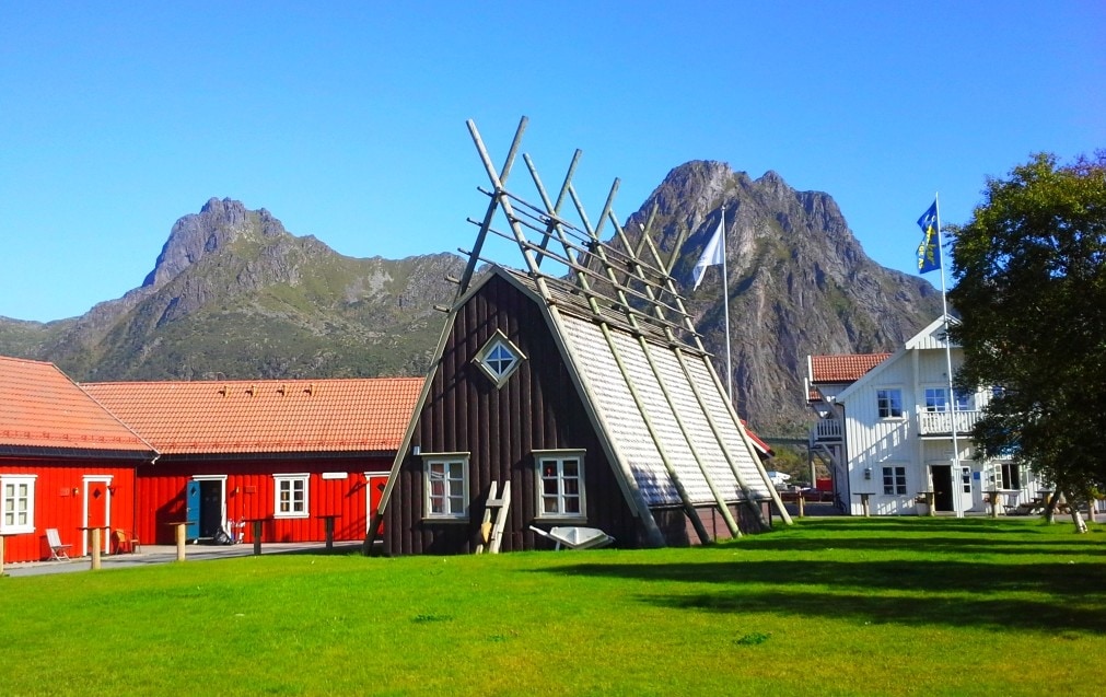 ż, miasteczko usytuowane jest nad samym Morzem Norweskim z którego, wyrastają strome masywy górskie liczące ponad tysiąc metrów, pomiędzy którymi wcinają się wyraziste, lapidarne i malownicze fiordy. Ponadto, charakterystyczna nordycka zabudowa kolorowych domków rybackich RORBU, położonych na palach przy samej linii brzegowej, urozmaica i przyozdabia surowy i sterylny krajobraz archipelagu, tworząc unikalną i jedyną w swoim rodzaju wizytówkę całych Lofotów. Rorbu położone są tuż przy morskim brzegu, ze względu na ich funkcję i praktyczne wykorzystanie. Od początku XX wieku domki wykorzystywane były jako kwatery lokalnych rybaków utrzymujących się głównie z połowów arktycznego dorsza. Obecnie, wykorzystywane są one jedynie w celach turystycznych, jako domki letniskowe dla turystów umożliwiając przyjezdnym przeżycie typowo norweskich wakacji, dając tym samym namiastkę życia tutejszych mieszkańców. Będąc na Lofotach, zawsze wybieramy ten rodzaj noclegów!