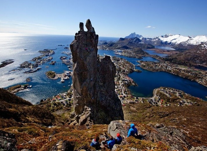 Drugie miasto Lofotów, które zasługuje na szczególną uwagę to oddalone o 24 kilometry od Svolværu- Henningsvær! Henningsvær szczególnie znany jest ze swoich atutów przyrodniczych i walorów krajobrazowych, umożliwiającących zamianę zatłoczonych szlaków górskich na samotność w ścianie, oferując najlepsze warunki na wspinaczkę górską „niewolnikom lin”! Otoż, to właśnie tutaj znajduję się najwięcej możliwości wspinaczkowych na całych Lofotach, oferując kursy, szkolenia i wyprawy grupowe zarówno dla ekspertów jak i laików na każdym poziomie! Ponadto, zaplecze turystyczne i hotelowo-usługowe jest równie dobrze rozwinięte, kusząc wspinaczką wysokogórską turystów z całego świata. Miejsce to zamieszkuje ok. 450 osób ale podobnie jak Svolvær tętni życiem zarówno samych mieszkańców jak i zapalonych miłośników górskich. Ja uwielbiam Henningsvær poprzez jedną wyjątkową restaurację, której północna ściana zrobiona jest z samej szyby, dzieki czemu możesz delektować się gorącą kawą w ciepełku z widokiem na majestatyczne góry skąpane w morzu. Po prostu MASTERPIECE!