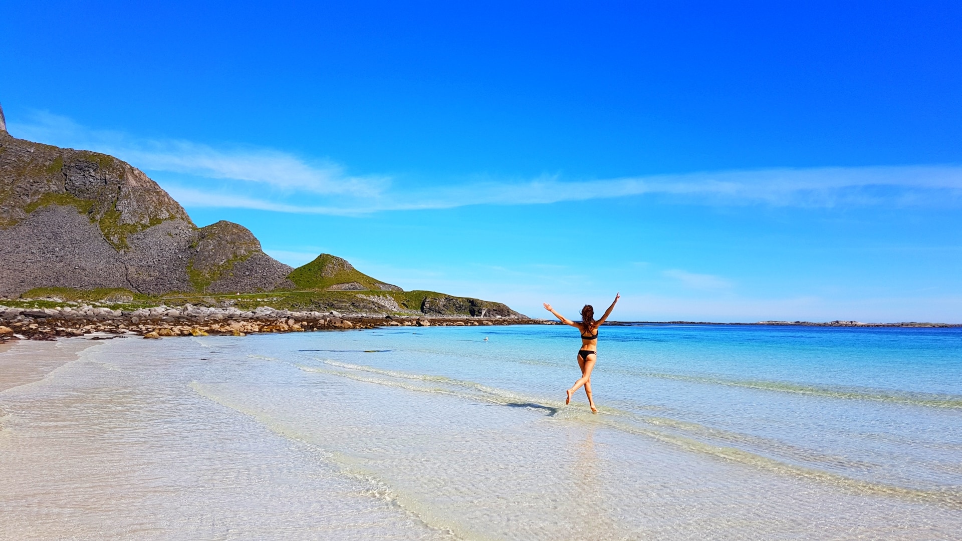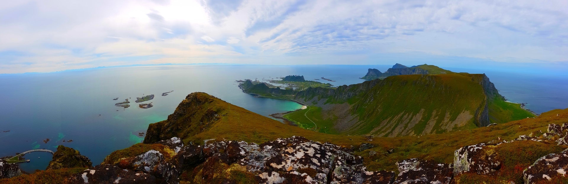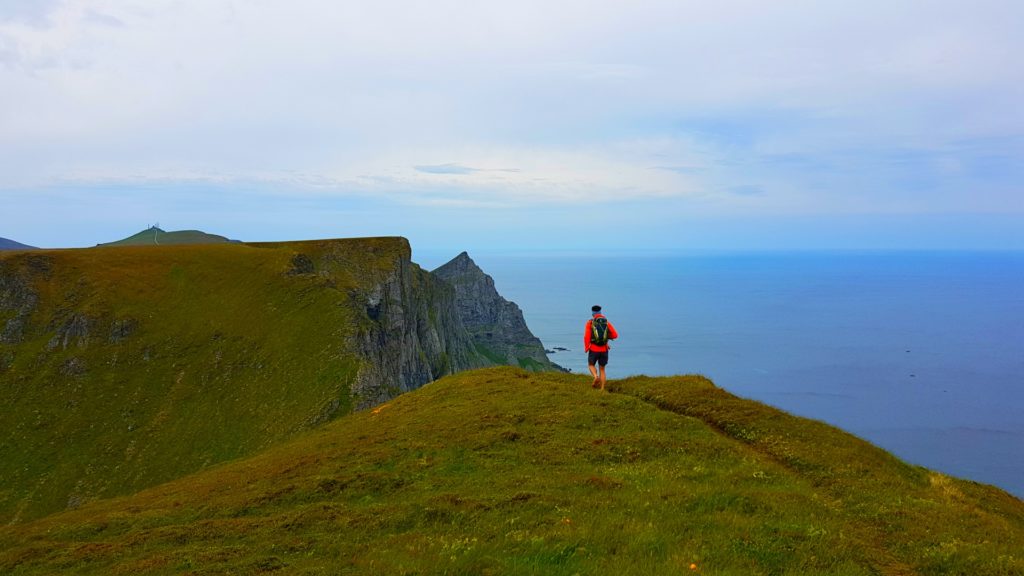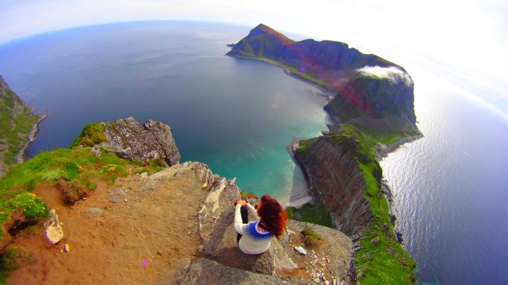 Celem mojej podróży na Wyspę Værøy było przejście jej skalistej części wzdłuż i wszerz. Wisienką na torcie miał być słynny widok który można zobaczyć tylko z wierzchołka góry o nazwie Håheia. (To ten widok pierwszy raz zobaczyłam dawno temu w słynnym artykule National Geographic, który zmotywował mnie do odwiedzenia wyspy). Widok ten uznawany jest za symbol całego archipelagu, a zdjęcia z góry na otaczające plaże i bezkres morza pojawiły się na dziesiątkach pocztówek i zdjęć zafascynowanych turystów.