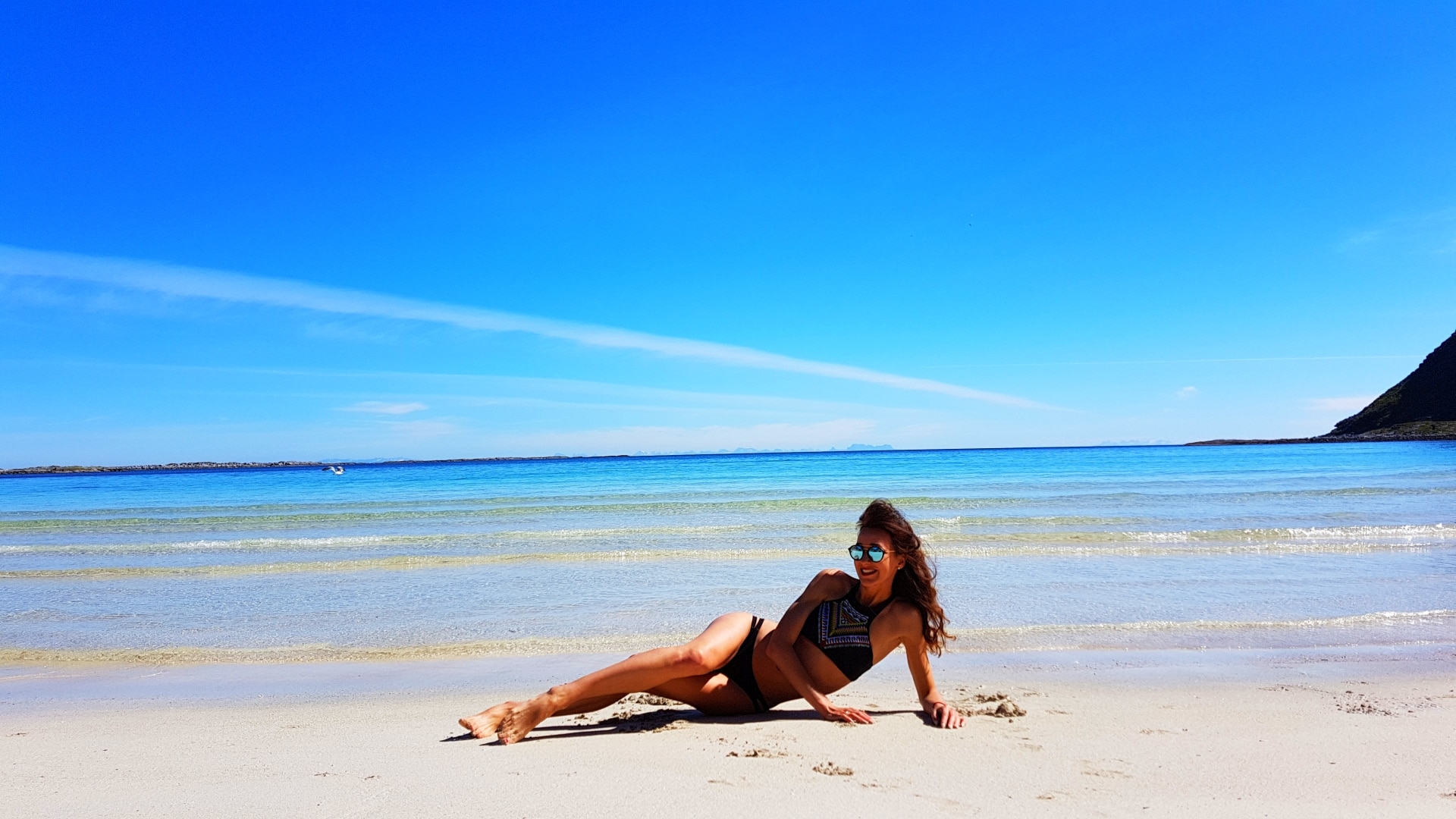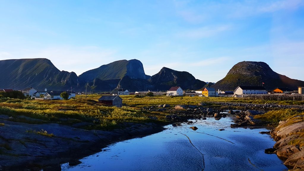 Wysepka ta leży w samym sercu fiordu Vestfjorden, zamieszkuje ją ok. 750 ludzi, posiada aż jeden sklep, jedną restauracją (z najlepszą sałatką z krewetkami jaką jadłam), najstarszy kościół w województwie (z 1740 roku) i całe 21 km asfaltowej drogi. Poza infrastrukturą wyspa jest nieziemska jeśli chodzi o warunki przyrodnicze, bogata w cudowne plaże, strzeliste góry, długie doliny i wpadające do wody klify. Choć ten weekendowy wypad nie skończył się dla naszej dwójki najlepiej to ponad tysiąc zrobionych zdjęć, godzinnych ujęć ( zarówno z gopro jak i z drona) dobrze pozwolą nam zapamiętać ten ostatni czerwcowy weekend na ukrytej wyspie. Dlaczego?