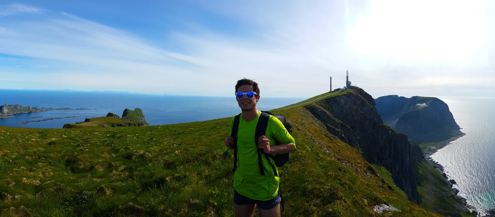 W tym dniu planowaliśmy trekking przed opuszczeniem wyspy. Celem było podbicie najwyższego punktu na wyspie- Nordlandsnspen. Cudowna ścieżka prowadząca na samą górę była nad wyraz stroma. Niestety ostatnie 20 metrów tej najbardziej niedostępnej góry przerosło mnie gdyż trzeba było się wspinać po dość mokrej ścianie trzymając się za pionowo wiszącą linę.
