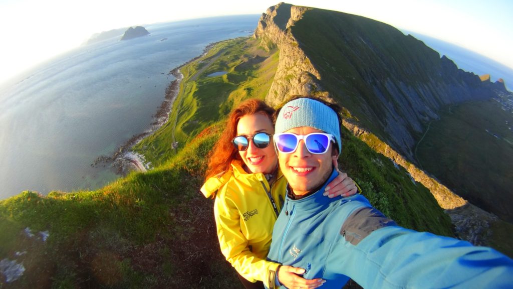 Było jeszcze piękniej niż się spodziewałam. Miałam wrażenie że widzę ogromną taflę Oceanu Arktycznego w skład którego wchodzi miniaturowe Morze Norweskie, które na dalekim horyzoncie łączy się z troszkę większym Morzem Grenlandzkim! Otchłań, bezkres i monumentalność morza otaczająca nas ze wszystkich stron góry! Bezgraniczny ogrom i widok niebiesko- złotej tafli królestwa Neptuna i niekończącej się wody zrobił na mnie piorunujące wrażenie. Kocham morze. Uwielbiam je pod każdą postacią. Powiew morskiej bryzy i słone zimne arktyczne powietrze dodatkowo nasiliły to uczucie. Móc oglądać tą złotą taflę z wyżyn potęguje to uczucie. Byłam totalnie oczarowana i bardzo wdzięczna. Słowa nie są w stanie opisać tego piękna. Oczywiście Zdeno uchwycił ten moment z perspektywy lotu drona więc koniecznie zobacz filmik z naszej wizyty na Værøy.