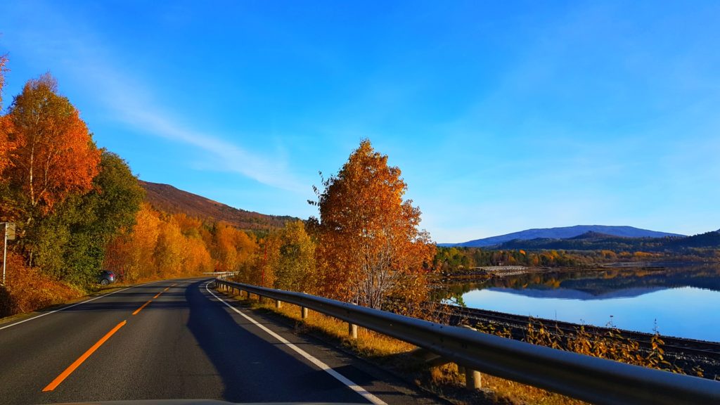 Krystalicznie czysta woda odbija czerwone, zachodzące słońce. Noc ozdabia się w kolorowe niebo rozświetlone magiczną zielenią zorzy polarnej- zachęcając do biegania po dworze ze statywem i aparatem fotograficznym! Intensywne kolory pomarańczy. Zimne arktyczne powietrze. Długie cienie na szlaku turystycznym. Spadające liście. Smak jagód w pełnym słońca dniu. Zorza polarna zarówno w dniu jak i w nocy. Zimne powietrze oceaniczne. Osobiście uważam, że jesień jest jednym z najbardziej SPEKTAKULARNYCH zjawisk lapońskiej przyrody (oczywiście, zaraz po zorzy polarnej???)!
