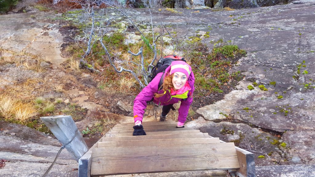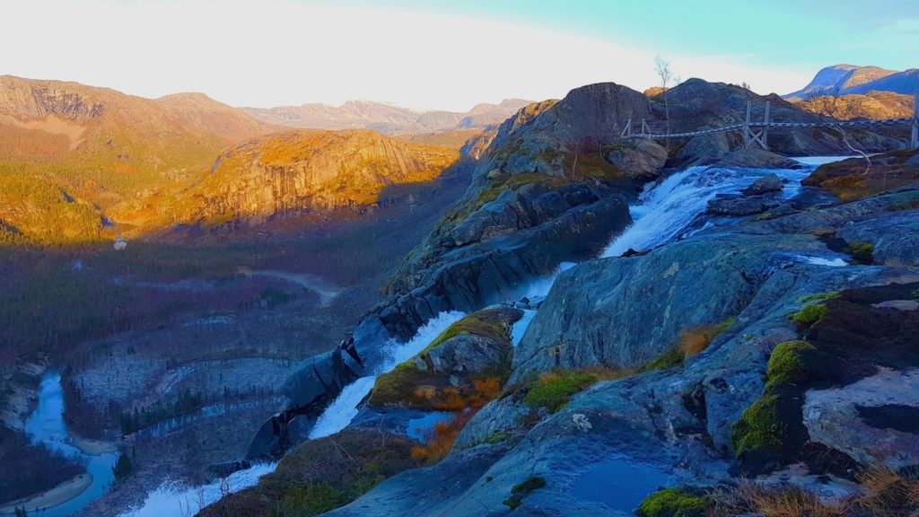 Szlak turystyczny do słynnego wodospadu wiedzie od samego początku przez gęsto zarośnięty las, po stromym i wyraziście nachylonym terenie górskim, uniemożliwiając złapanie oddechu już od samego początku trekkingu. Pierwsze 30 minut wspinaczki było dość wymagające, ale warte wysiłku. Po wejściu na wierzchołek masywu, zdecydowanie każdego może zachwycić OLBRZYMIA, magiczna, polodowcowa panorama na okoliczną dolinę, jeziora, sieć rzek i dywan kolorowych jesiennych lasów. Cały ten przepiękny widok kolorowych lasów zostawiliśmy za naszymi plecami, bowiem przed nami drzewa przedstawiały już bezlistne konary przygotowane na zimę! Cudo i niepojęty ogrom natury! Dzicz, dzicz i ani śladu cywilizacji w promieniu kilkuset kilometrów. Co ciekawe, Rago ze szwedzkimi parkami narodowymi tworzy łącznie NAJWIĘKSZĄ DZICZ w Europie z obszarem przekraczającym 9 000 km2, czyniąc go największym powierzchniowo terenem chronionym w Europie!