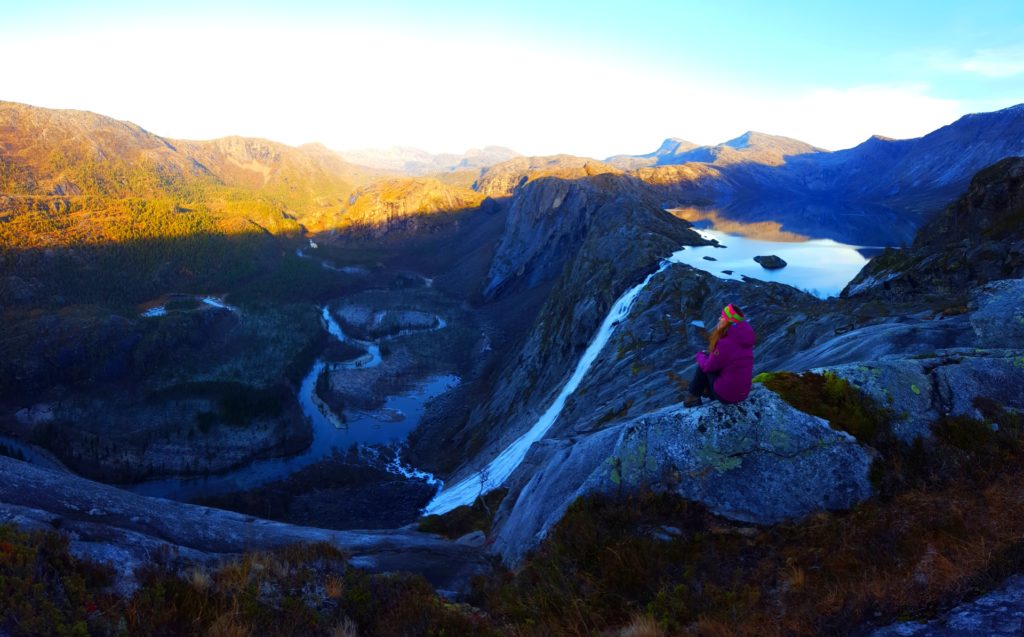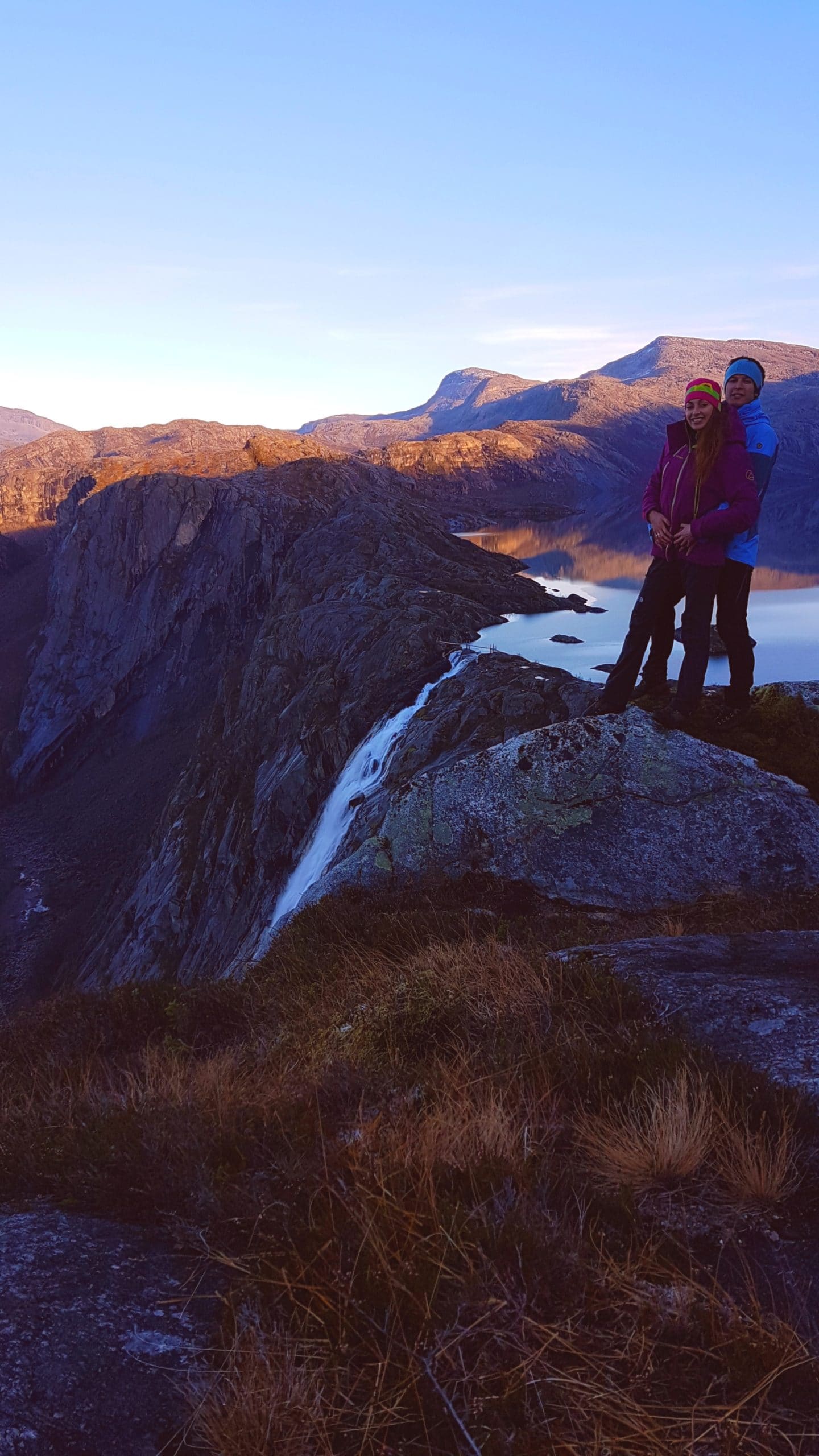 Wspinaczka to nie zawsze bajka, ale zawsze zabiera nas do baśniowych miejsc. Tym razem, też tak było. Bowiem, jak już wcześniej wspomniałam sercem tego zimnego miejsca, główną atrakcją oraz celem naszej wycieczki był – monumentalny, jedyny w swoim rodzaju wodospad- LITLVERIVATNET– o wysokości ponad 250 metrów! Wodospad jest tak niebosiężny, że ciężko ogarnąć go spojrzeniem ze szlaku, ale dobitny szum spadajacej 250 metrów niewidocznej jeszcze dla turysty wody, nadaje ogromnej mistyczności temu miejscu.
