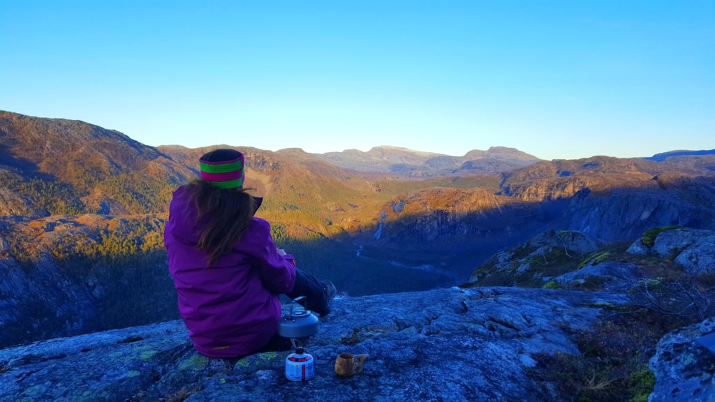 Oczywiście nie smażył mięsa w tych prymitywnych warunkach, a jedyne co zrobił to zalał tzw. Liofilizanty. Jest to prowiant używany przez norweskich żołnierz w gorach, charakteryzujący się tym iż jest bardzo pożywny, lekki i całowicie wolny od niepotrzebnych konserwantów i innych niezdrowych dodatków. Dodam, ze proces w jakim powstaje to wymrażanie wody z produktów spożywczych, dzięki czemu pokarm pozbawiony jest wody i zachowuje 95% swojego koloru, kształtu, zapachu, smaku oraz niezbędnych witamin, soli mineralnych oraz białek. Smakowalo nieziemsko! W takich momentach, człowiek docenia każdy najmniejszy kęs CIEPŁEGO posiłku, a jedzenie smakuje jak w 3 gwiazdkowej restauracji Michelin ( w sumie to niewiem jak smakuje jedzenie w restauracji Michelin, ale tak sobie je w tym momencie wyobraziłam 😛 ).