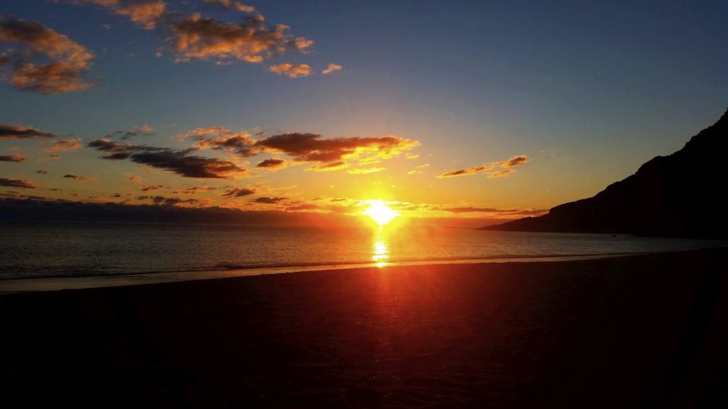 Pogoda była po prostu idealna. Mimo, iż było już przed północą, temperatura powietrza wskazywała ok 15 stopni Celsjusza. Wyjątkowe światło nadało górom magicznego blasku i różowego koloru, efekt niczym -filtr delikatnej sephi. Morze było bezwzględnie spokojne, a odbijające -promienie słoneczne delikatnie ogrzewały nasze twarze, dodając tym samym –zastrzyk pozytywnej energii.