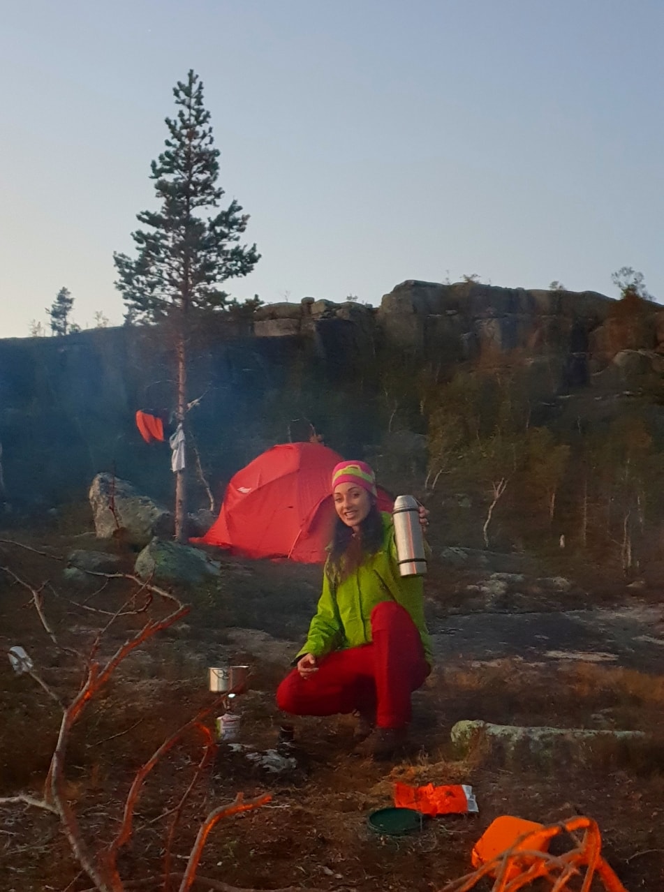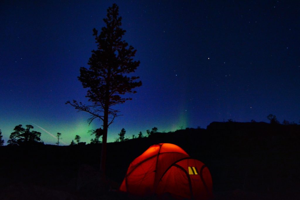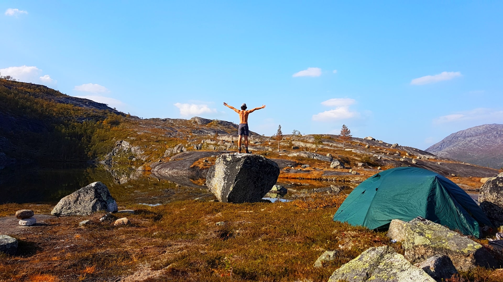 Po 10 kilometrach dojdziesz do dwóch chatek, Ragohytta i Storskogvasshytta, które możesz wynająć na noc od Statskog (Krajowy organ ds. Leśnictwa). My ominęliśmy chatki i pierwszego dnia pokonaliśmy ok. 13 kilometrów dochodząc do małych jezior, przy których rozbiliśmy swój biwak. Ognisko, ciepła wrześniowa noc nad samym jeziorem w samym SERCU norweskiej Laponii w świetle miliona gwiazd i zorzy polarnej przeniosła nas w bajkowy nierealny świat XXI wieku! Drugiego dnia zostaje do pokonania ok. 11 km w delikatnie nachylonym wzwyż terenie masywu górskiego, które doprowadzi Cię do najpiękniejszego wodospadu jaki znajduje się w Północnej Norwegii!