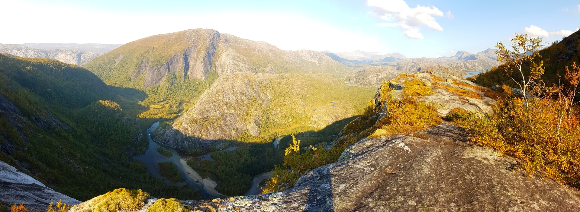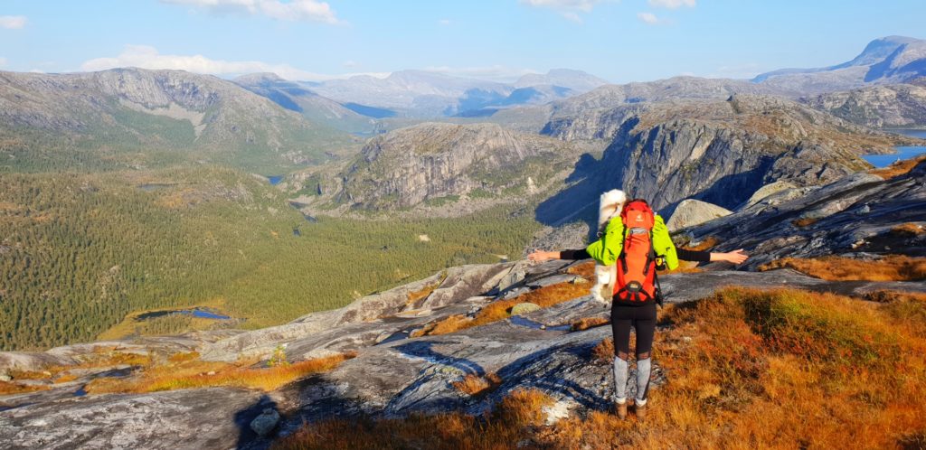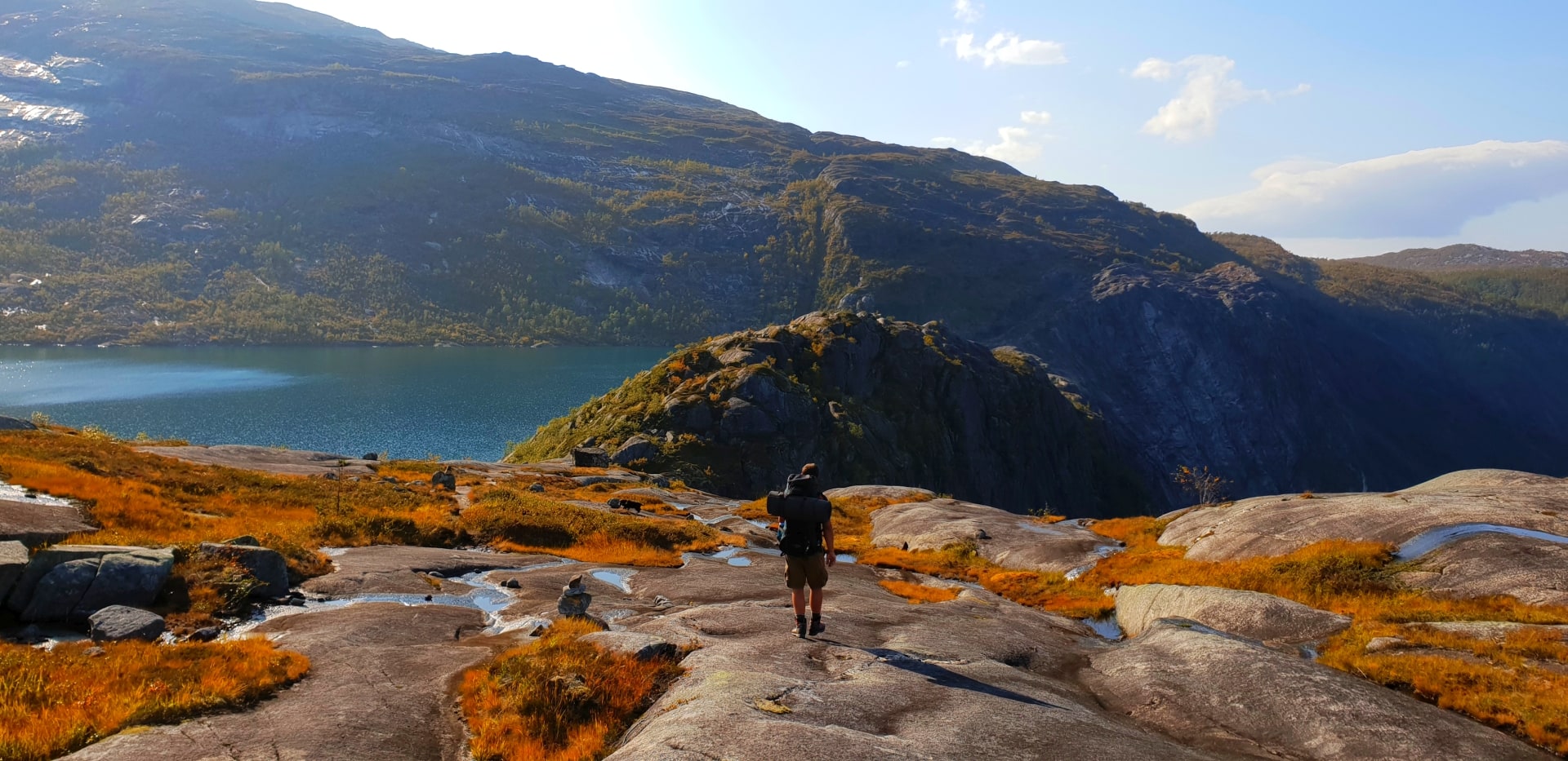 Po przejściu ok. 360 metrów wzwyż wejdziesz na plato, gdzie teren jest bardzo zróżnicowany. Od bagien, po mokre skały, wchodząc w górę tylko po to żeby zaraz zejść 50 metrów w dół! Długość całej trasy masywu górskiego do samego wodospadu i z powrotem to ok. 11 kilometrów. Pamiętaj, że jest to “ragowska mila” to znaczy, że ukształtowanie terenu jest bardzo wymagające i zazwyczaj trwa DWA razy dłużej niż się planowało. Długość jednodniowej wycieczki do wodospadu kończącej się przy samym aucie w Nordfjord to minimum 5 godzin.