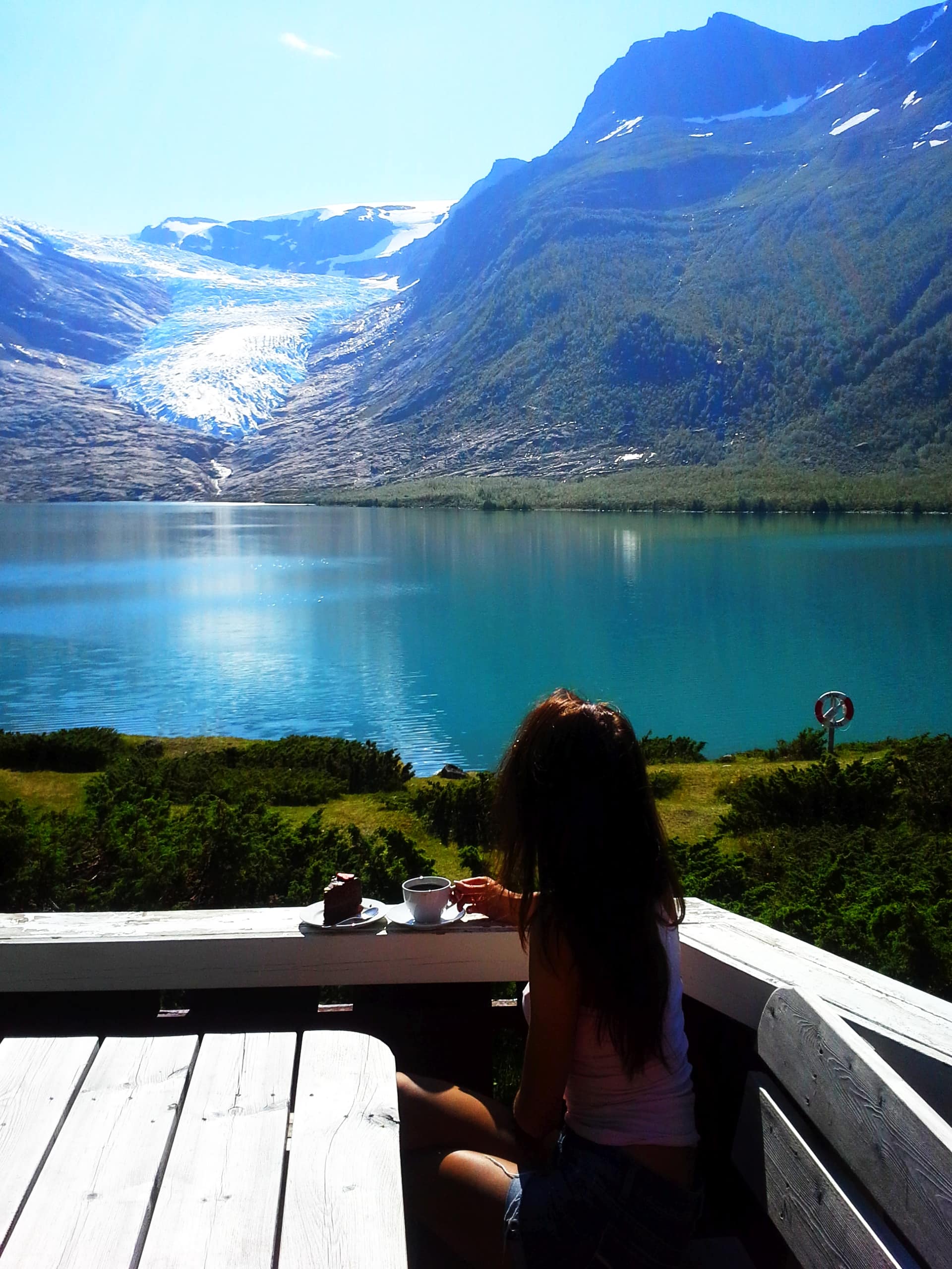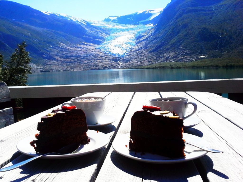 Możesz również wypożyczyć sobie rower bezpośrednio po przepłynieciu przez fiord. My zazwyczaj tak dostajemy się do samego lodowca. Po ok 4 km trasa rowerowa kończy się i zaczynamy wspinaczkę. Wejście na lodowiec uzależnione jest od warunków pogodowych i sprzętu. Byliśmy już na lodowcu parę razy, ale równie niesamowite i panoramiczne widoki znajdziesz już na ścieżce prowadzącej na sam lodowiec. Głównie wspinamy się ok. 300 metrów i dokładnie wybieramy najlepszą miejscówkę na odpoczynek. Balsam dla duszy i ciała.